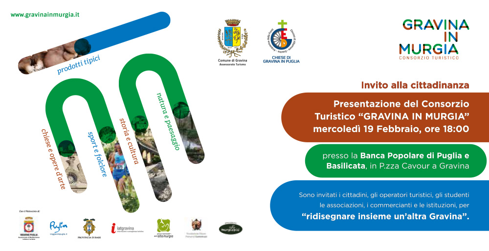 “Gravina in Murgia” nasce per rilanciare e promuovere lo sviluppo turistico della città, col sostegno dell’Amministrazione comunale e della Chiesa.