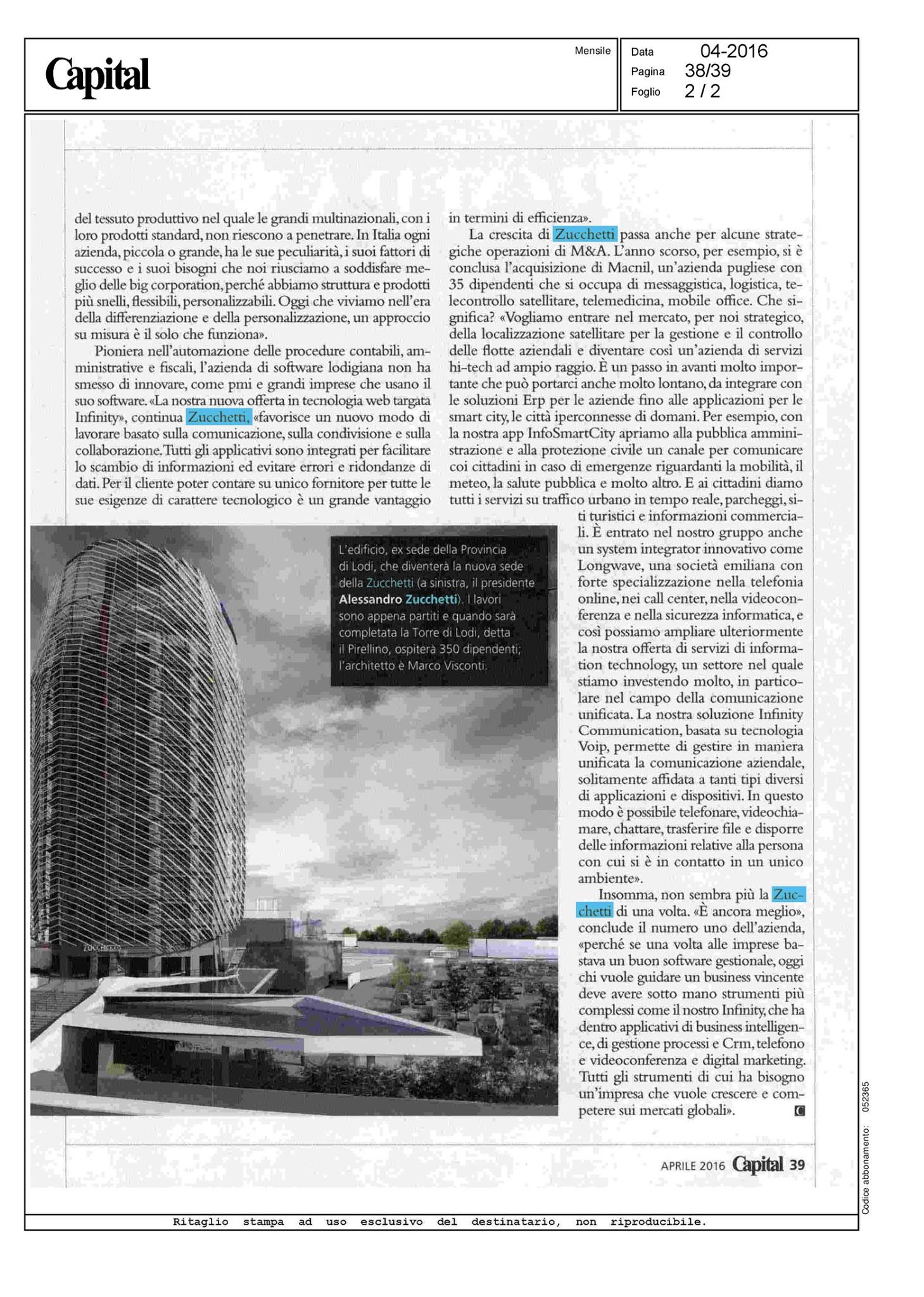 Alessandro Zucchetti, CEO del Gruppo Zucchetti, in un’intervista sul mensile Capital parla anche di smart city e del progetto dell’App InfoSmartCity realizzata da Macnil Gruppo Zucchetti.