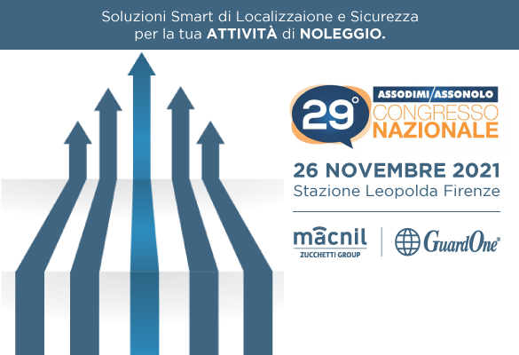 Il 26 novembre, a Firenze presso la Stazione Leopolda per Assodimi/Assonolo, si terrà il 29° Congresso Nazionale dei noleggiatori professionali. Macnil Gruppo Zucchetti e GuardOne Italia S.r.l. saranno presenti per presentarvi tutte le novità e i propri servizi più avanzati sulla localizzazione satellitare di flotte e mezzi.