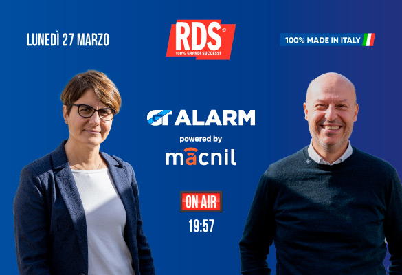 Mac & Nil on air su RDS 100% Grandi Successi 28/03/2023 27/03/2023: Mariarita Costanza e Nicola Lavenuta on air su RDS 100% Grandi Successi, per raccontare la filosofia 100% Made in Italy di Macnil GT Alarm! Ascolta qui il podcast: https://www.youtube.com/watch?v=4AmIiVBbJ5M